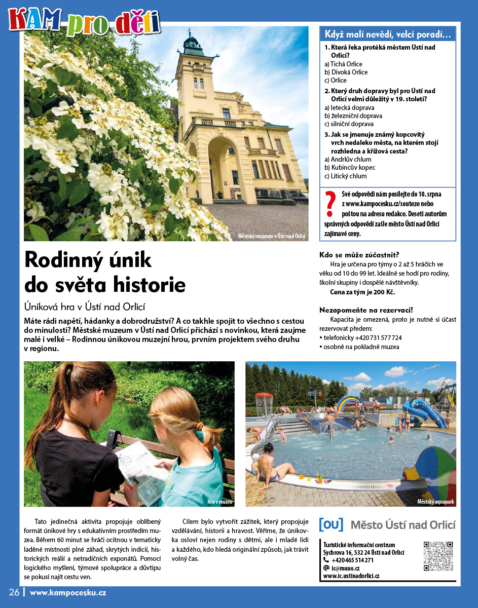 Máte rádi napětí, hádanky a dobrodružství? A co takhle spojit to všechno s cestou do minulosti? Městské muzeum v Ústí nad Orlicí přichází s novinkou, která zaujme malé i velké – Rodinnou únikovou muzejní hrou, prvním projektem svého druhu v regionu.
