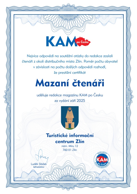 Nejvíce odpovědí na soutěžní otázky do redakce zaslali čtenáři z okolí distribučního místa Zlín. Poměr počtu obyvatel v závislosti na počtu došlých odpovědí rozhodl, že prestižní certifikát