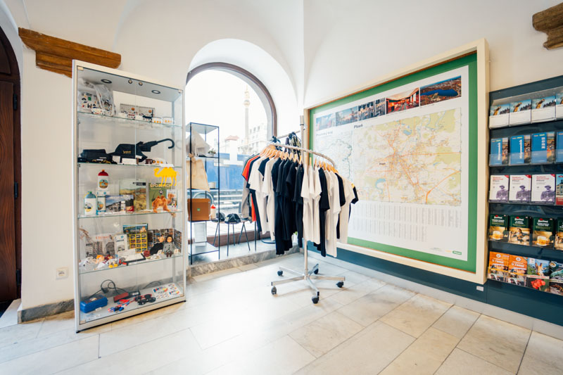 Prodáváme jízdenky na MHD, vícedenní turistické jízdenky, poštovní známky, sběratelské kolekce (vizitky, známky, magnety), pohledy, hrnky, korbele a další předměty. Nabízíme také suvenýry z několika našich autorských kolekcí (trička, batohy, porcelán, čepice a další). Zároveň máme v proději také tematické průvodce, knihy o Plzni a mapy.