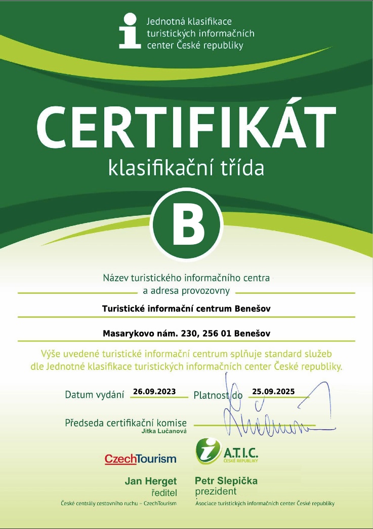 V TIC Benešov se dozvíte všechny potřebné informace o: