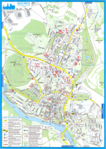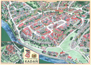 nabídka propagačních letáků, mapy města a malované mapy historické části města
