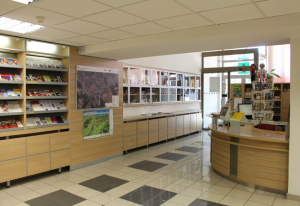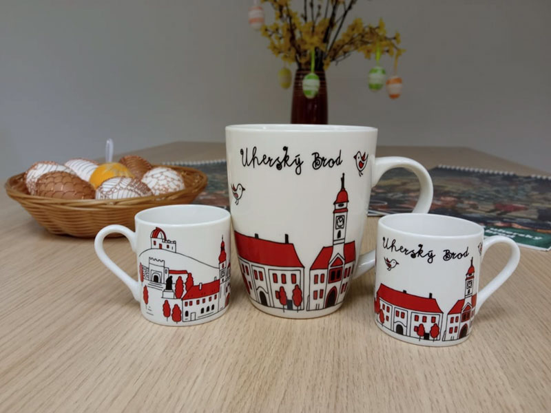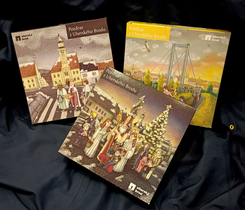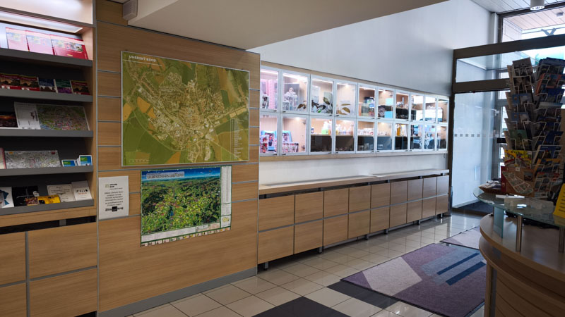 co prodáváme: upomínkové předměty s motivy města, regionální výrobky, knihy, poštovní známky
