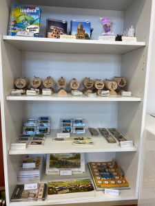 co prodáváme: upomínkové předměty, literatura s regionální tematikou