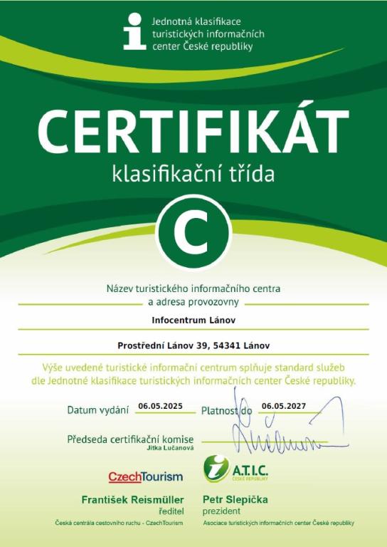 Turistické informace z regionu, info o kult. a sport. dění, veř. internet, prodej suvenýrů, Czech POINT, kopírování a tisk, sken, laminace, ověřování listin a podpisů, evidence obyvatel, Lánovský zpravodaj, infokanál KTV, aktuality na web, knihovna, veř. WC, ztráty a nálezy