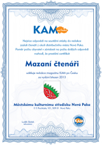 Váš záznam bude z databáze Vydavatelstvím KAM po Česku s.r.o. vymazán neprodleně, nejpozději však v zákonné lhůtě.