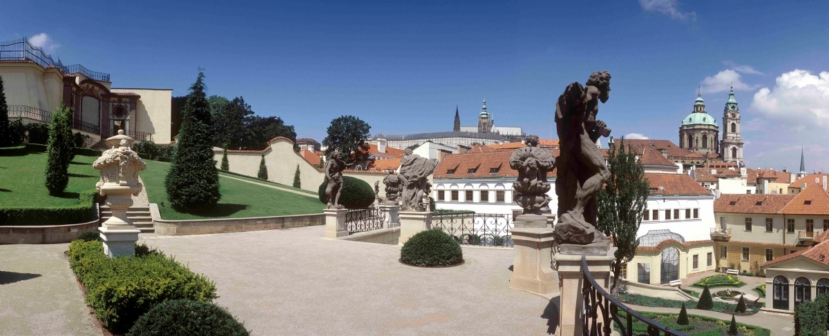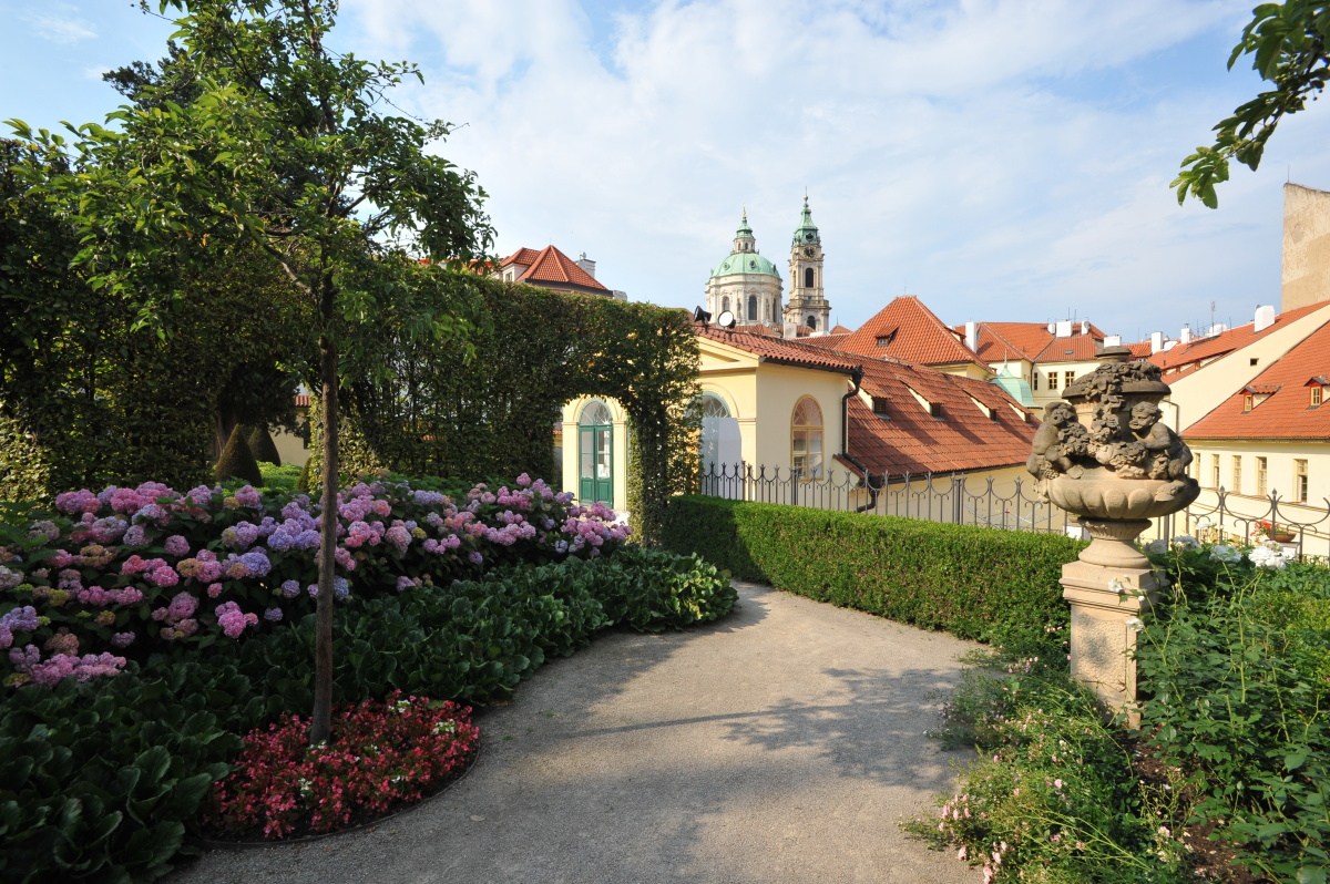 Das Märchenmilieu bezaubert mit wunderschönen Beeten, antiken Statuen, Volieren, Fontänen, Aussicht und Atelier von Mikoláš Aleš. Vom Vrtba- Garten kann man die Schönheiten der Prager Burg und der Dächer der Prager Kleinseite bewundern und genießen.