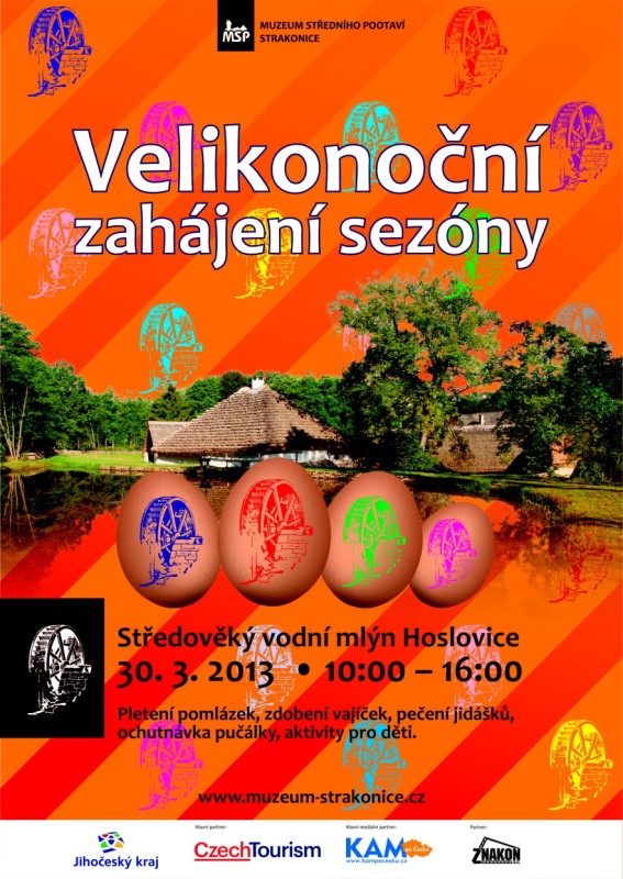 Zahájení sezony čeká 30. března také Středověký vodní mlýn v Hoslovicích, který Vám své brány otevře již tradiční akcí zaměřenou na Velikonoce a velikonoční zvyky. Těšit se můžete na ukázky zdobení vajíček různými technikami, pletení pomlázek, pečení a ochutnávky velikonočního pečiva jidášků, přípravu a ochutnávky tradičního pokrmu pučálky. Pro děti budou připraveny nejrůznější aktivity včetně možnosti ozdobit si vajíčko voskovou technikou. Zajištěno je také občerstvení a možnost nákupu velikonočního dekorativního zboží. Program proběhne i v případě nepříznivého počasí, a to v příjemných prostorách nové budovy.