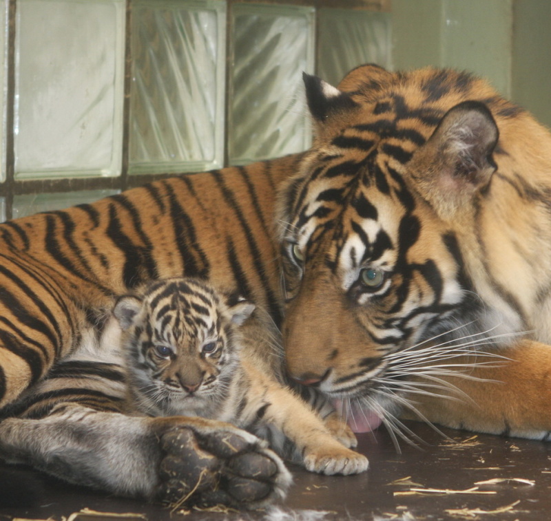 Rušno je také v pavilonu šelem u expozice tygrů sumaterských (Panthera tigris sumatrae). Matka Suma téměř každý den vynáší své měsíční mládě do vnitřní ubikace na obdiv návštěvníkům. Malý tygřík zatím neurčeného pohlaví se narodil 28. března, v jihlavské zoo po dlouhých dvaceti letech.