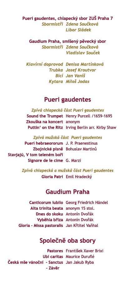 Již popáté zveme milovníky vánočních tradic na prosincový koncert Nadace Jedličkova ústavu, a to v prostorách Betlémské kaple. O zaručenou vánoční atmosféru se postarají vynikající sbory Gaudium Praha a Pueri gaudentes, prostřednictvím kterých chce Nadace poděkovat všem svým současným a třeba i budoucím příznivcům.