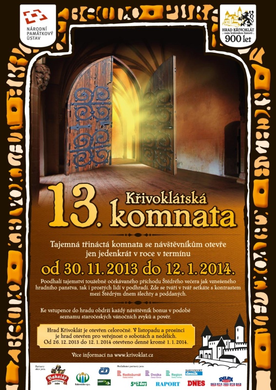 Křivoklátská Třináctá komnatanávštěvníkům poodhalí, díky své výzdobě, toužebné očekávání příchodu tajuplného Štědrého večera, a dýchne na návštěvníky vánoční atmosféru, jak vznešeného hradního panstva, tak i prostých lidí v podhradí. Zde se tváří v tvář setkáte s kontrastem mezi Štědrým dnem šlechty a poddaných v podobě stolování, stromečků, dárků, výzdoby, svíček, betlémů, štědrovečerních tradic, zvyků a pověr.