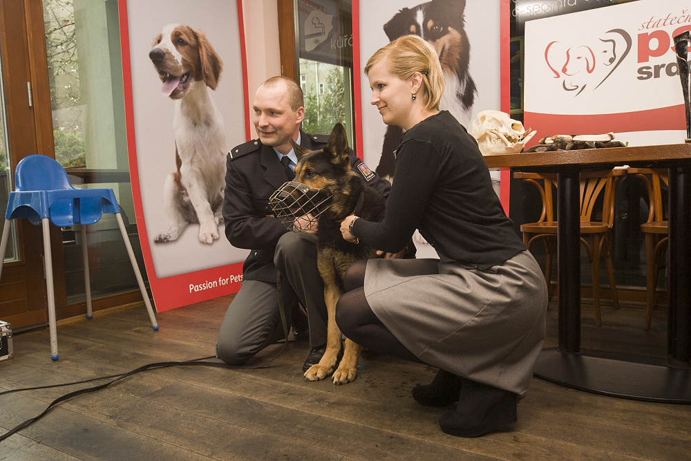 Cenu přebírá: pprap. Jiří Císař a pes Saros