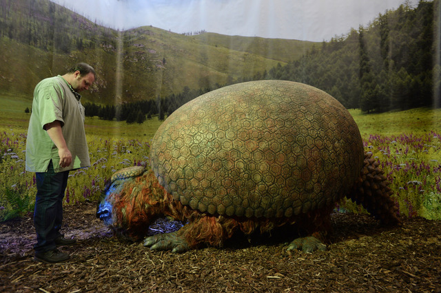 "My se zaměřujeme prakticky zejména a jenom na útoky, na to, jakým způsobem jedinec získával potravu. Ať už byl v prvohorách, druhohorách, třetihorách nebo čtvrtohorách," řekl Jiří Machálek z plzeňské firmy West Media, která má síť osmi Dinoparků a ročně vyrábí desítky modelů druhohorních zvířat. Největší scéna zobrazuje obřího ještěra diplodoca, který se snaží zachránit ponorem v bažině před nebezpečnými, ale mnohem menšími dravci.