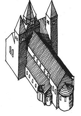 Původní rotunda, kterou na Pražském hradě nechal postavit kníže Václav kolem roku 929, byla v roce 1060 částečně zbořena a na jejím místě započala výstavba větší a honosnější románské baziliky. Poté co téměř hotovou stavbu v roce 1091 postihl požár, byla v dubnu 1096 přece jen dokončena a vysvěcena tehdejším pražským biskupem Kozmou. Zasvěcena byla třem světcům, jejichž ostatky zde byly uloženy – sv. Vítu, sv. Václavu a sv. Vojtěchovi. Půdorys baziliky je dodnes patrný pod třetím hradním nádvořím, kde se dochovaly původní románské sloupy, fragmenty zdiva a dlažby.