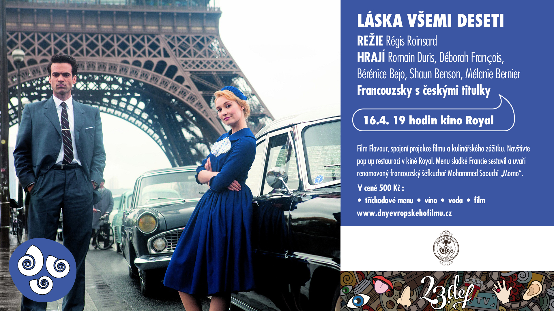 Ke snímku LÁSKA VŠEMI DESETI podáváme tuto sobotu 16. 4. v 19.00 hodin FRANCOUZSKÉ MENU: