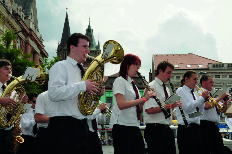 Jistě silným zážitkem bude při nedělním monstrkoncertě několik velkých dechových orchestrů na jednom pódiu se zpěvákem Davidem Gránským a Evou Burešovou a finále s Kmochovými hity.