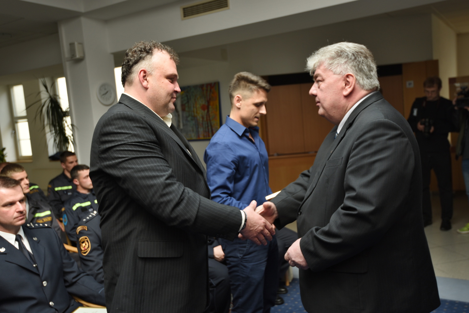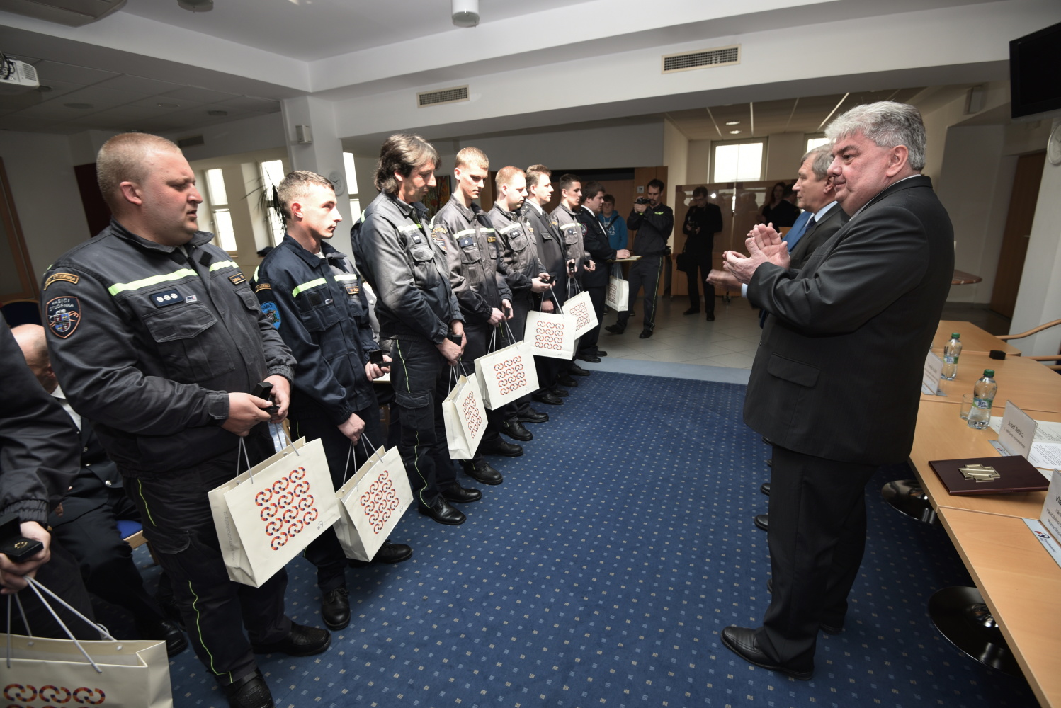 Za nejlepší záchranářský čin roku 2015 byli letos oceněni zástupci Hasičského záchranného sboru Moravskoslezského kraje Zlatým záchranářským křížem, který převzali z rukou prezidenta České republiky Miloše Zemana. Dnes (3. 5. 2016) obdrželo za tento špičkový profesionální zásah odznaky Zlatého záchranářského kříže a diplomy 25 zástupců moravskoslezských bezpečnostních složek a tým profesionálních hasičů z Hasičské stanice Ostrava-Zábřeh. Ocenění předal v budově Krajského úřadu Moravskoslezského kraje Josef Babka, 1. náměstek hejtmana MSK