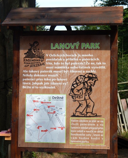 Výlety po Orlických horách? Jak jinak než s princeznou Kačenkou! Neb právě ona zdejším horám vládne více než 300 let, a to od jara až do podzimu. Po Kačenčině pohádkové říši můžete celoročně vandrovat, seznamovat se s místními pohádkovými příběhy a do své Vandrovní knížky sbírat razítka s patrony horských obcí. Odměnou i krásnou vzpomínkou vám bude keramická postavička některého z patronů pohádkové říše. Třeba to bude Rampušák, zimní vládce hor. Po stezce S Kačenkou po stopách sklářů překonáte hřeben Orlických hor z Deštného do Orlického Záhoří a seznámíte se se zdejší tradicí sklářství. Odměnou vám bude skleněná mince s patronem jedné z horských obcí. Krásný den plný zážitků, poznání a her pro děti i dospělé můžete prožít také přímo v Deštném, na nově otevřené Kačenčině pohádkové stezce. Trasa nabízí celou řadu lákavých zastávek, jako lanový park, terénní tříkolky, jízdu lanovkou, Muzeum zimních sportů, řemesel a turistiky nebo stylové občerstvení v penzionu Kozí chlívek.