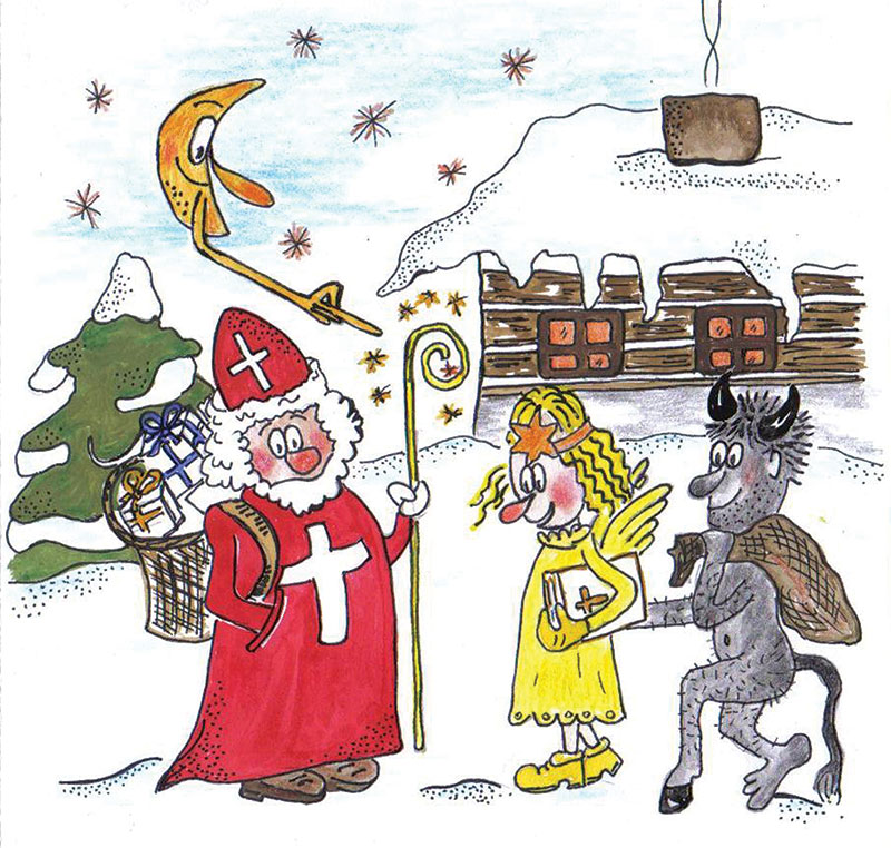 Mikuláše historie, legendy, tradice i lidová slovesnost vykreslily pestrými barvami jako patrona, který pomáhá skoro všem. Vedle něho je anděl nadpřirozená bytost, žijící v Nebi a podřízená Bohu, kdežto čert je pohádková bytost, žijící v pekle a podřízená Satanovi.