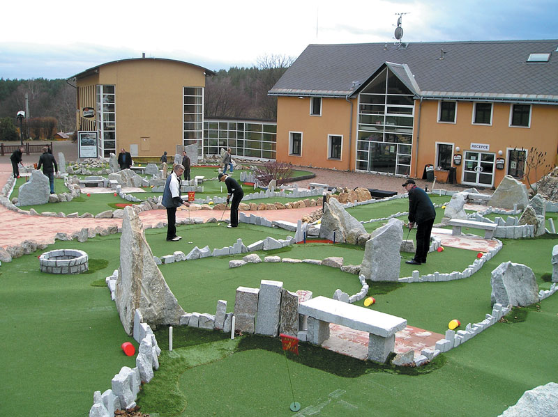 Jedno z takových „pilotních“ hřišť je od loňského podzimu v golfovém areálu Ještěd. Má osmnáct jamek a k tomu navíc jednu přednost. Při hře se učíte i pravidla golfu. Jsou zde odpaliště pro pány a dámy, bílé, žluté, červené i modré kolíky, vodní překážky a bankry. Ano, na takovém hřišti propojíte společenskou zábavu s výukou golfu. A pokud časem zvládnete onu zábavnou část, můžete se přesunout na blízký green také s umělou trávou a vedle delšího patování si vyzkoušet i krátkou hru. No a pak se můžete vydat na driving a pokoušet se odpalovat míček do dáli. Zábavnou a nenásilnou cestou se postupně přibližujete ke sportovnímu pojetí golfu, případně i k získání tzv. zelené karty, která vás opravňuje ke hře na „regulérním“ hřišti.