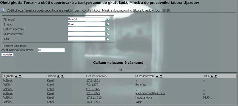V polovině března byl dán veřejnosti k užívání unikátní projekt Památníku Terezín. Jedná se o databázi osob perzekvovaných nacistickým režimem, jejíž vytváření započal Památník Terezín již koncem 60. let minulého století.