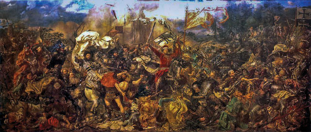 Bitva u Grunwaldu, nazývaná též bitva u Tannenbergu nebo bitva u Žalgirisu, se odehrála 15. července 1410. Polsko- litevská koalice zde na hlavu porazila řád německých rytířů. Jan Sokol z Lamberka spolu se Stanislavem z Dobré Vody velel v této bitvě čtvrté polské korouhvi sv. Jiří, v níž bylo na patnáct set jezdců, vesměs Čechů a Moravanů. Vítězství koalice mělo zásadní vliv i na pozdější české dějiny.