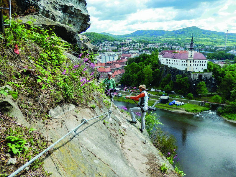 Velmi vyhledávanou vyhlídkou ve spojení s adrenalinovým zážitkem je via ferrata na Pastýřské stěně. Pastýřská stěna je jednou z turistických zajímavostí města Děčína. Tato devadesátimetrová pískovcová stěna se rozprostírá na levém břehu řeky Labe a vrcholek skály nabízí ojedinělý pohled na starou část města Děčína, kterému dominuje Děčínský zámek tyčící se nad údolím řeky Labe. Via ferrata byla veřejnosti zpřístupněna roku 2014. V tuto dobu bylo na stěně vybudováno 5 lezeckých cest. Počet zajištěných cest se postupně navyšoval a aktuálně je na stěně už 14 různě obtížných cest.