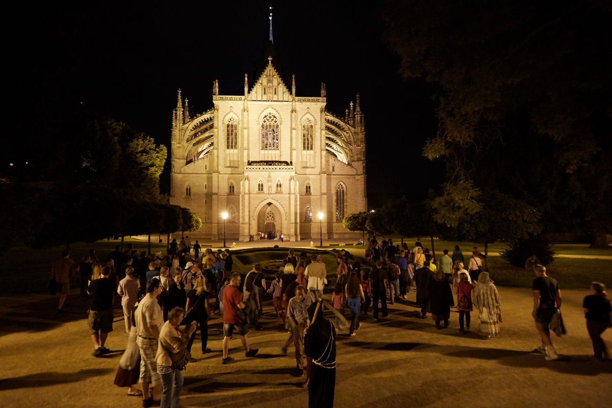 Pondělní a úterní večery jsou věnovány večerním prohlídkám sedleckých pamětihodností, konkrétně prohlídce tajemné Kostnice za svitu svíček či katedrály Nanebevzetí Panny Marie, kde vám kostýmovaný průvodce ukáže všechny taje a zákoutí od podlahy až po střechu. V úterý odpoledne můžete navštívit Kamenný dům, kde vás bude čekat císařský dragoun, který bude mimo jiné vzpomínat na návštěvu císaře pána v Kutné Hoře v roce 1906. Na středeční večery připravilo arciděkanství Kutná Hora noční prohlídky setmělého chrámu svaté Barbory, kde zažijete jedinečnou atmosféru večera provoněného kadidlem a osvětleného svíčkami. Ve čtvrtek odpoledne můžete navštívit České muzeum stříbra - Hrádek, kde nasajete barokní atmosféru všemi smysly. Každý letní čtvrteční večer pak otevře své brány dominanta historického jádra, arciděkanský chrám sv. Jakuba, nejstarší kamenný chrám Kutné Hory. Z kostela sv. Jakuba se můžete vypravit ještě na noční putování romantickými i mystickými uličkami a zákoutími historické Kutné Hory při návštěvě produkce s názvem „Tajemné kutnohorské pověsti ožívají“. Podobný program jako v minulých letech nabízí také pátek – ti z vás, kteří mají rádi víno nebo třeba chtějí ochutnat to místní, kutnohorské, by měli navštívit podvečerní netradiční prohlídku kláštera sv. Voršily.