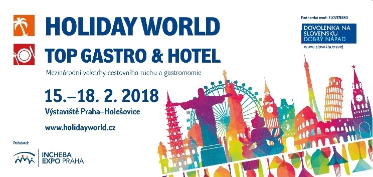 Sedmadvacátý ročník největšího středoevropského veletrhu cestovního ruchu HOLIDAY WORLD 2018 představí téměř celý svět. Ve dnech 15. – 18. února tohoto roku proběhne souběžně s dvanáctým ročníkem mezinárodního veletrhu gastronomie a zařízení pro hotely a restaurace TOP GASTRO & HOTEL 2018 a World Filmem, cestovatelským festivalem plným besed, projekcí a výstav s významnými cestovateli. Na Výstavišti v Praze Holešovicích mohou návštěvníci ochutnat a poznat téměř celý svět.
