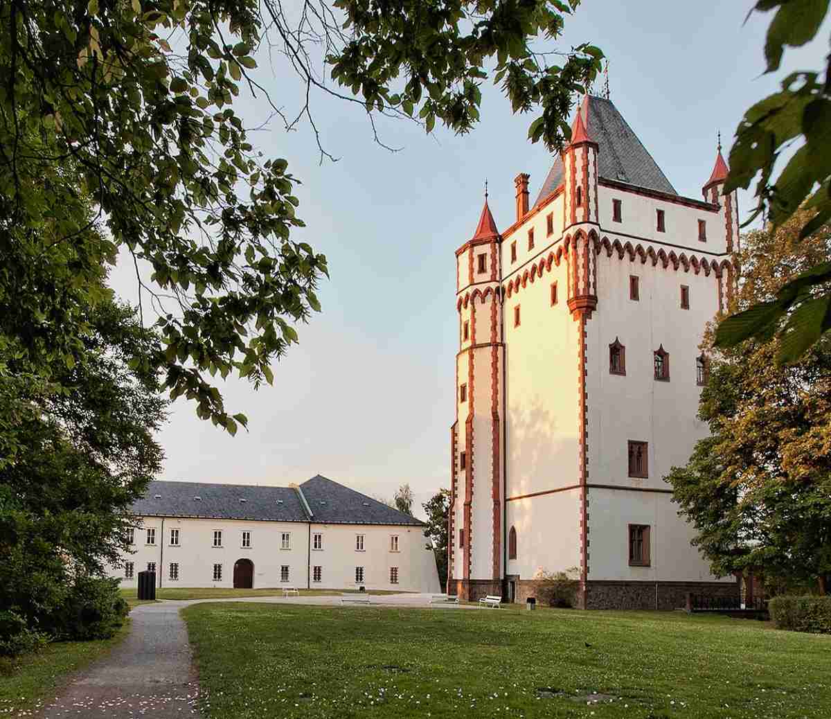 Je nejvýše se vypínající stavba zámeckého areálu. Hranolová stavba se nachází mezi Bílým zámkem a anglickým parkem. Tento výrazný solitér je pouhé torzo velkého projektu zamýšleného slavnostního vjezdu. Z přízemí vede jejím středem žulové schodiště, jednotlivá patra nebyla dostavěna.
