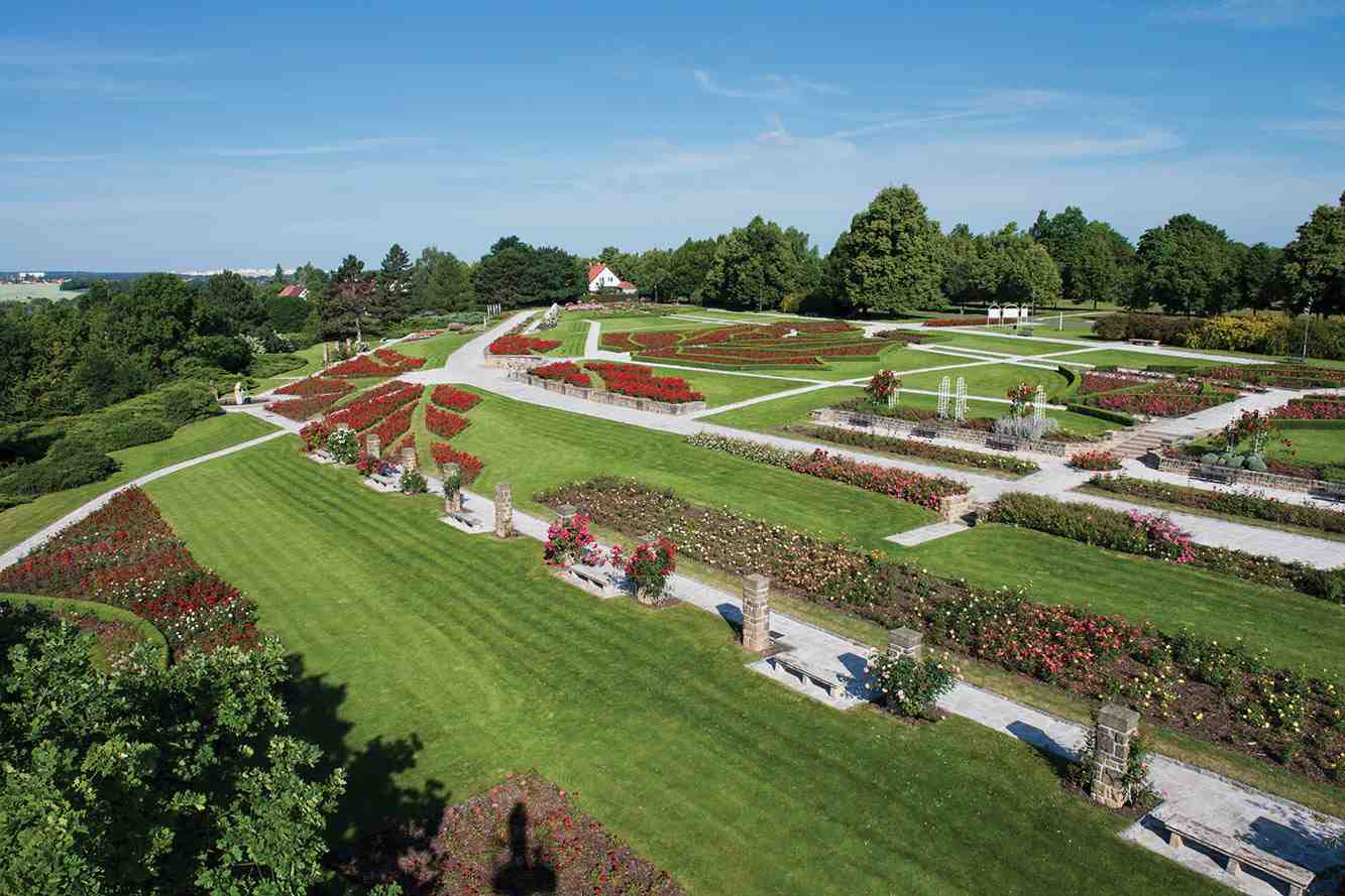 Pomyslnou i skutečnou hranicí mezi původními a novými Lidicemi tvoří Růžový sad. Jedno z největších rozárií na světě, ve kterém na 3,5 ha kvete 24 000 keřů v 240 odrůdách, včetně překrásného hybridu čajové růže s názvem Lidice.