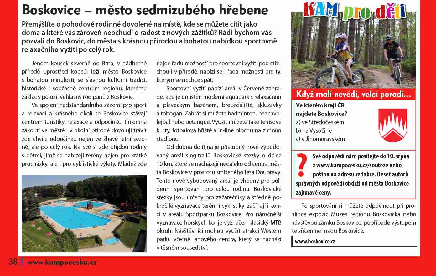 Přemýšlíte o pohodové rodinné dovolené na místě, kde se můžete cítit jako doma a které vás zároveň neochudí o radost z nových zážitků? Rádi bychom vás pozvali do Boskovic, do města s krásnou přírodou a bohatou nabídkou sportovně relaxačního vyžití po celý rok.