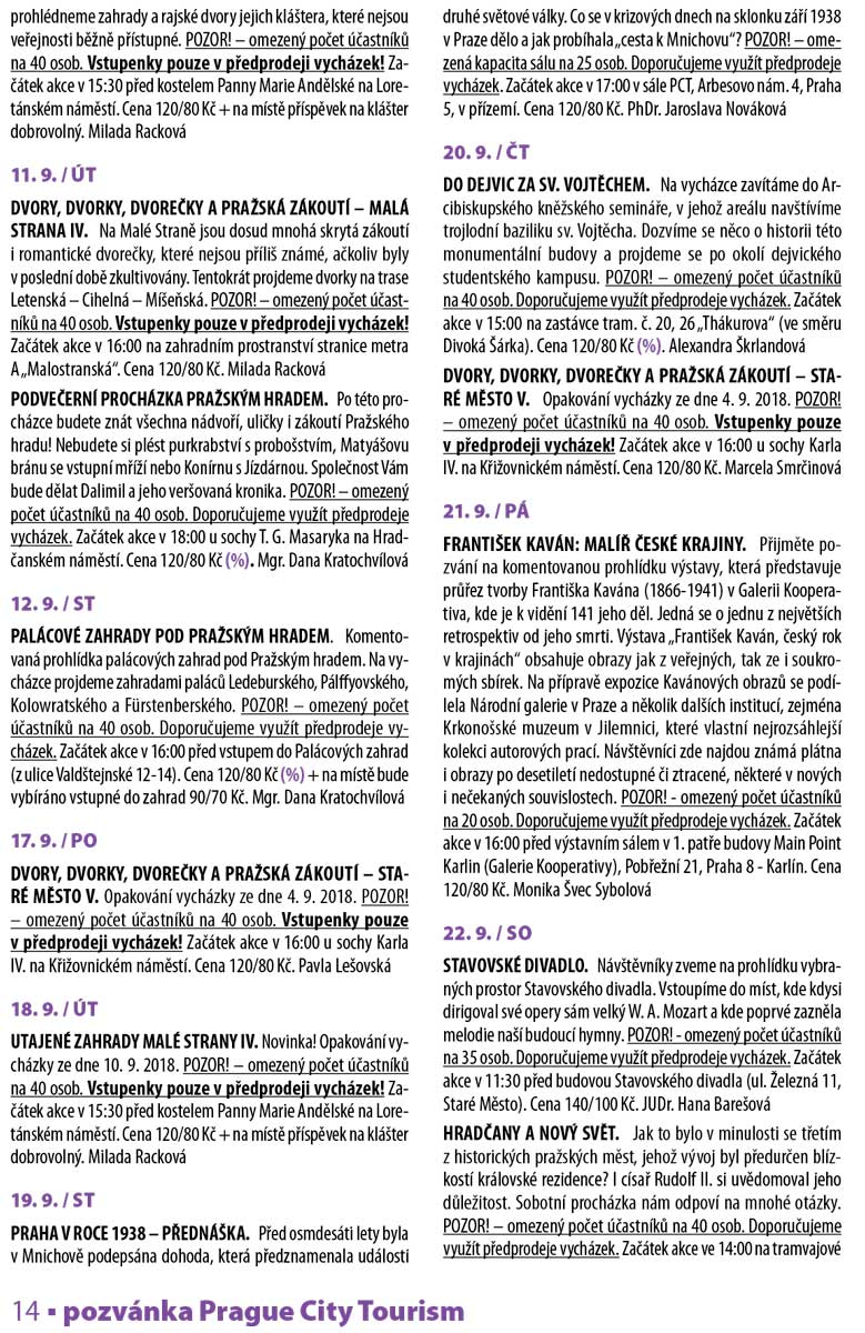 Vyprodané akce jsou avizovány na www.prazskevychazky.cz