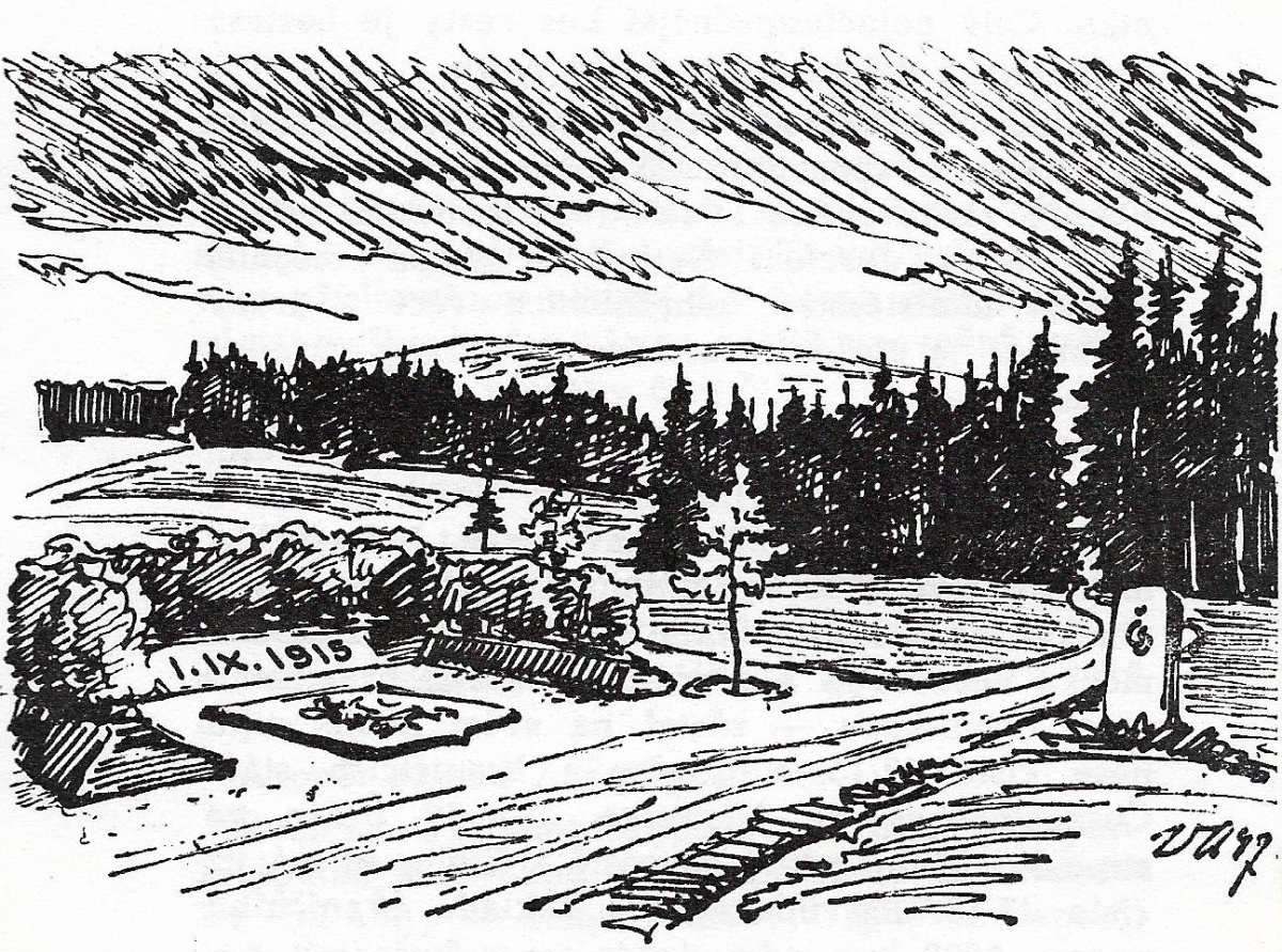 Na jaře roku 1947 na tomto místě vzniklo upomínkové zátiší. Malý státní znak z kamenné drtě, obehnaný ze tří stran hliněným valem, v jehož čele bylo z černobílé mozaiky vyvedeno památné datum 1. IX. 1915.