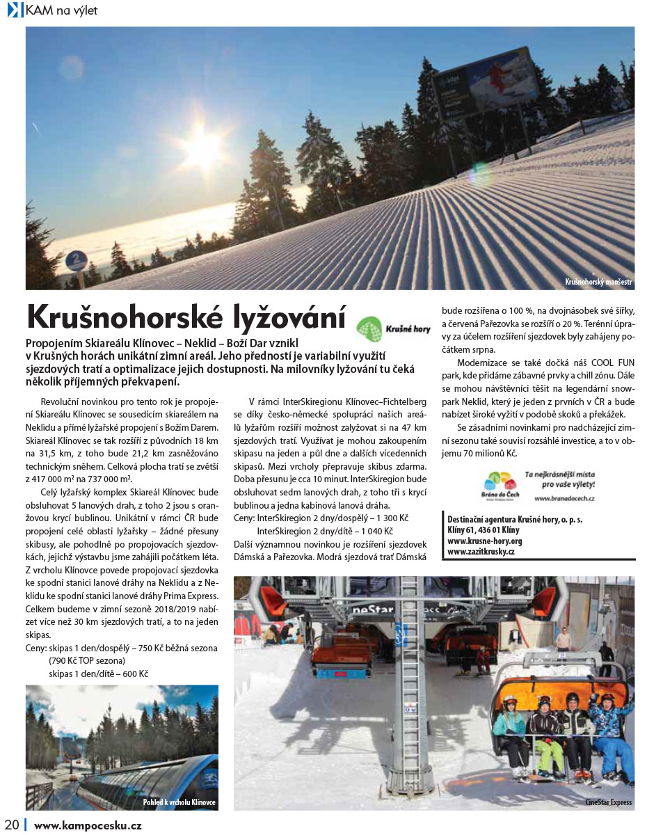 Propojením Skiareálu Klínovec – Neklid – Boží Dar vznikl v Krušných horách unikátní zimní areál. Jeho předností je variabilní využití sjezdových tratí a optimalizace jejich dostupnosti. Na milovníky lyžování tu čeká několik příjemných překvapení.
