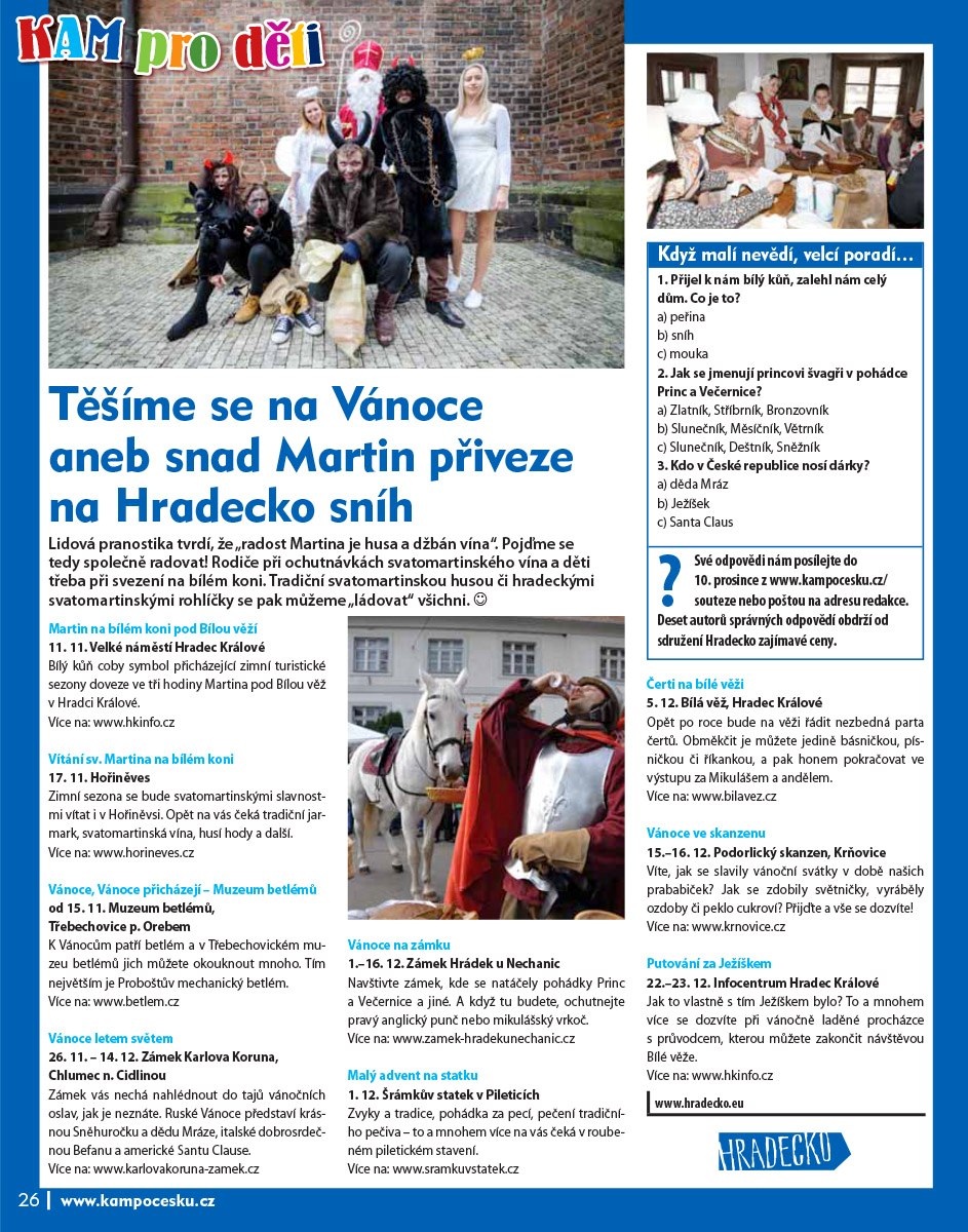 Lidová pranostika tvrdí, že „radost Martina je husa a džbán vína“. Pojďme se tedy společně radovat! Rodiče při ochutnávkách svatomartinského vína a děti třeba při svezení na bílém koni. Tradiční svatomartinskou husou či hradeckými svatomartinskými rohlíčky se pak můžeme „ládovat“ všichni.
