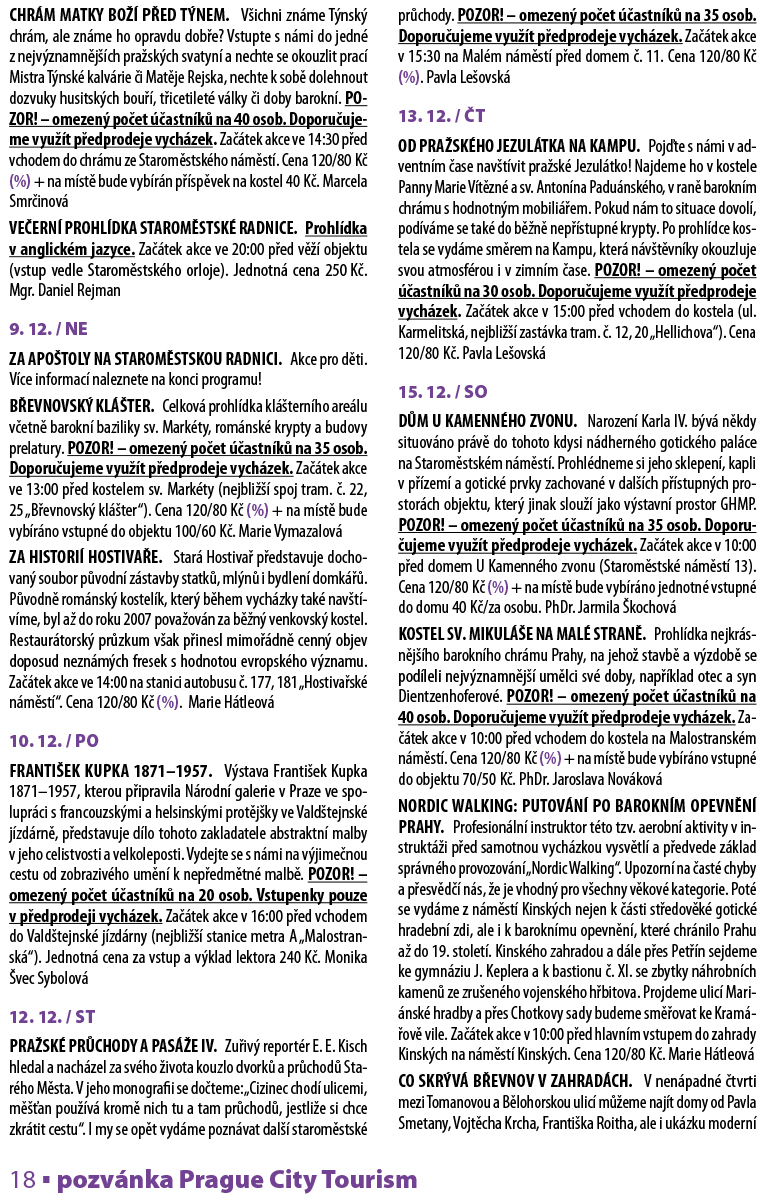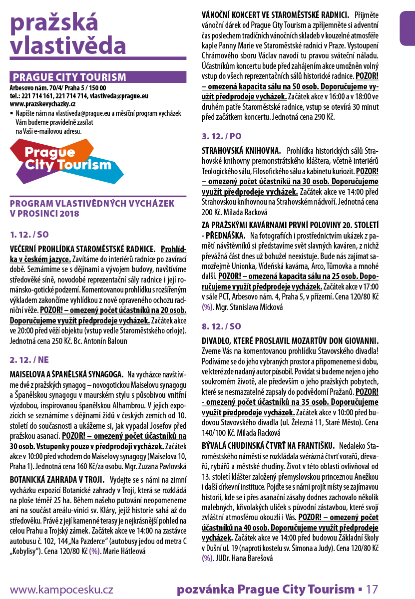 Vyprodané akce jsou avizovány na www.prazskevychazky.cz