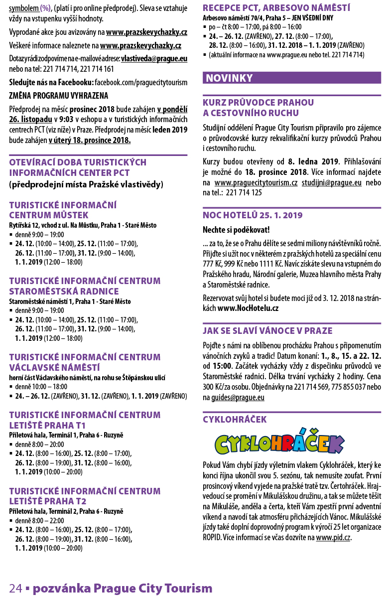 Veškeré informace naleznete na www.prazskevychazky.cz