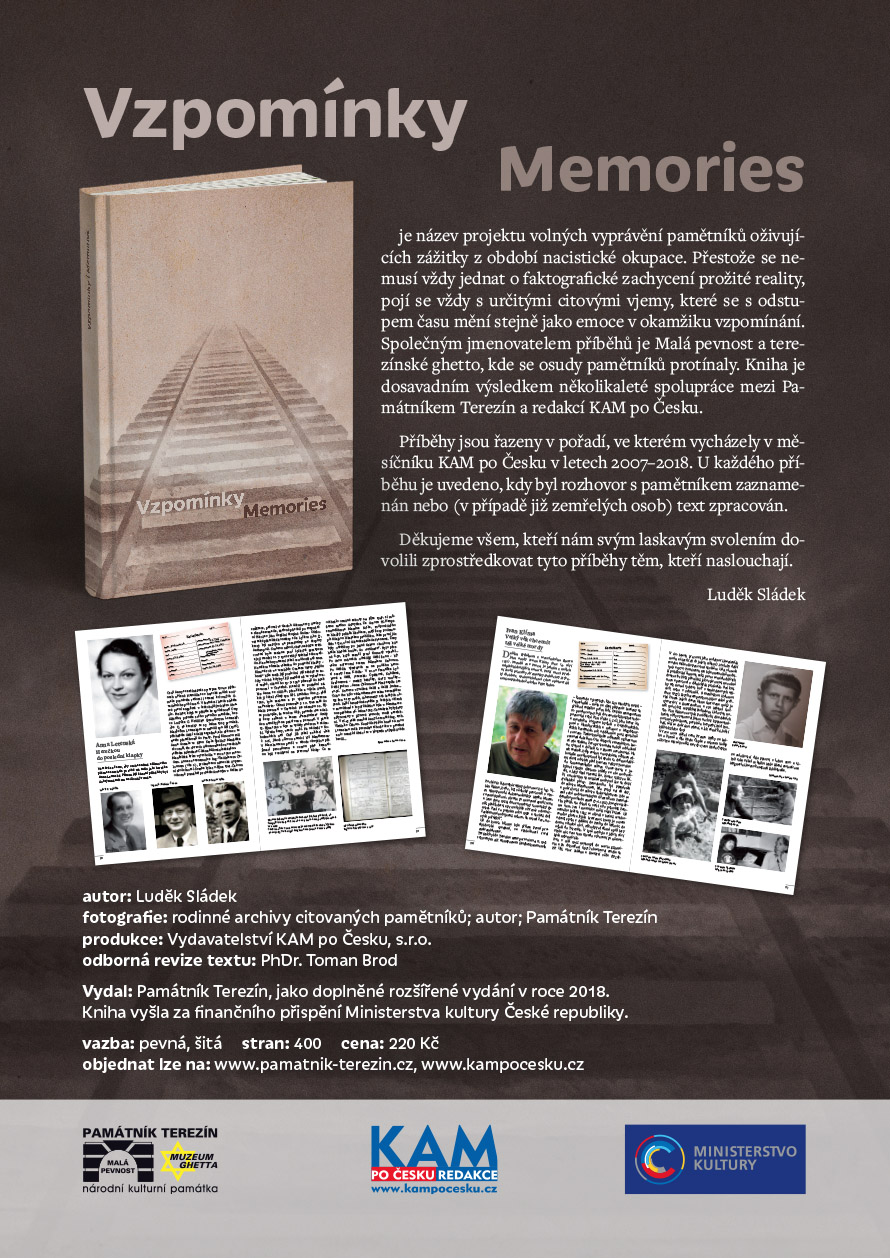 Vzpominky/Memories je název projektu volných vyprávění pamětníků oživujících zážitky z období nacistické okupace. Přestože se nemusí vždy jednat o faktografické zachycení prožité reality, pojí se vždy s určitými citovými vjemy, které se s odstupem času mění stejně jako emoce v okamžiku vzpomínání. Společným jmenovatelem příběhů je Malá pevnost a terezínské ghetto, kde se osudy pamětníků protínaly. Kniha je dosavadním výsledkem několikaleté spolupráce mezi Památníkem Terezín a redakcí KAM po Česku.