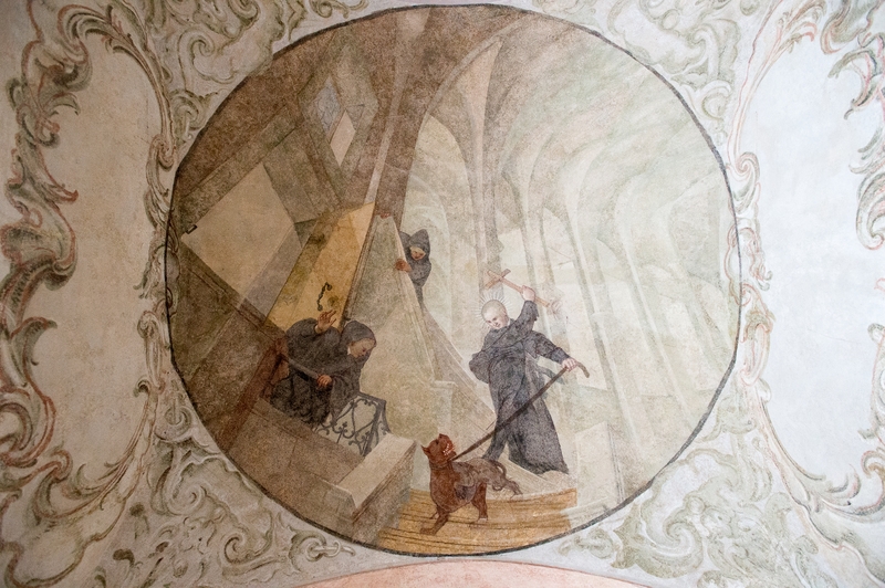 Rozsáhlý obrazový cyklus v chodbě konventu, zachycující dějiny kláštera v konkrétních událostech, vznikl jako součást barokní obnovy svatoprokopského dědictví v letech 1746 až 1750. Po zrušení kláštera Josefem II. v roce 1785 světští majitelé, kteří z kláštera udělali zámek, malby zabílili, aby tak zastřeli mystiku místa.