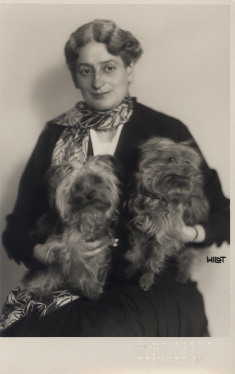 Foto: Terezie Schwarzenbergová s jorkšírskými teriéry; zdroj SOA Třeboň, odd. Český Krumlov, Sbírka dokumentace