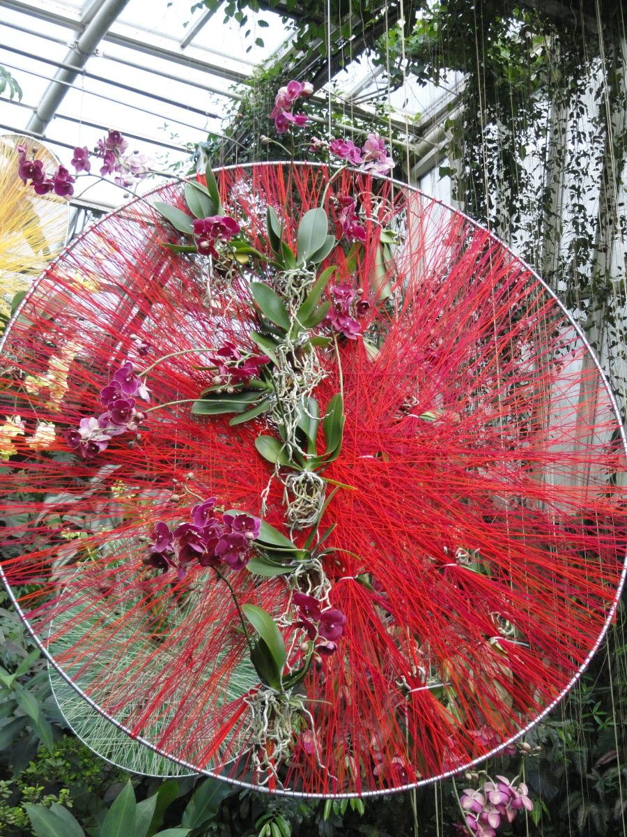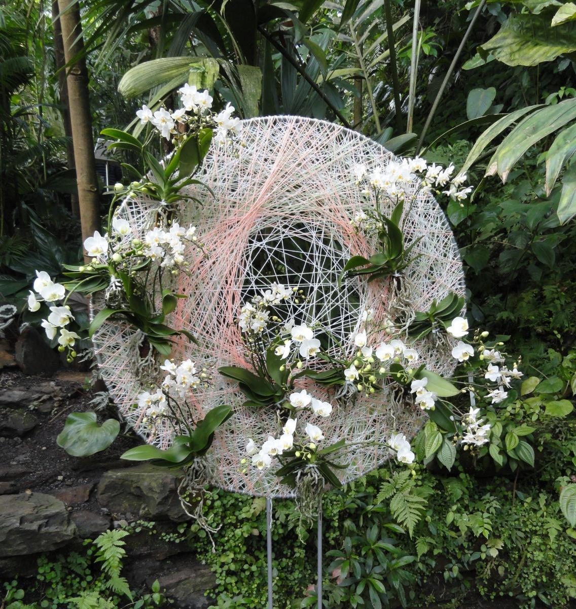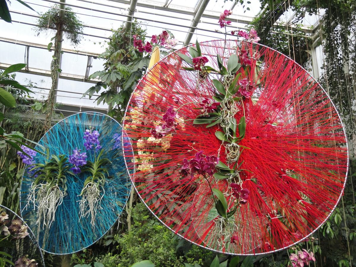 Ztvárnění od floristky Kláry Franc Vavříkové je skutečně unikátní. V prostoru skleníku se nachází nespočet kruhů omotaných pestrými vlákny, v nichž jsou propleteny orchideje a to často tak, aby byly co nejvíce barevně slazeny. A to dokonce i do modra. Kdo by si ale myslel, že jsou ony mysticky působící modré orchideje barvené, mýlil by se. Jedná se o exkluzivní orchideje rodu Vanda, která vykvétá v různých odstínech modré a fialové barvy.