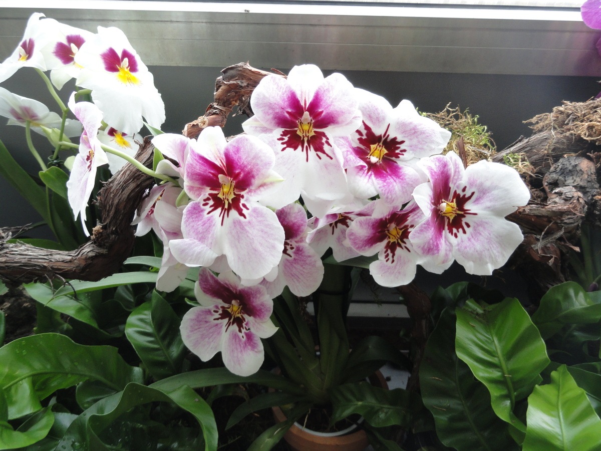 V nejrůznějších aranžmá dominovaly velké květy rodů Miltonia a Miltoniopsis, které mě osobně svým tvarem připomínají macešku. Pěkné byly i podstatně drobnější kvítky rodů Oncidium a Cambria.