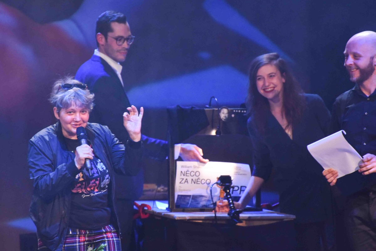 Něco za něco bylo nominováno společně s operu Sternenhoch uvedenou na prknech Národního divadla v Praze a představením Mýcení v Divadle na Zábradlí. Veronika Štefanová o hře říká: “Něco za něco nabízí poetiku, která v českých divadelních končinách není hned tak k vidění. Inscenace je společensky angažovaná, vtipná, nikoliv prvoplánově líbivá, provokativní a zároveň je skrz všechny chytré škrty srozumitelná”. Cenu z rukou váženého divadelního profesora Jana Císaře převzala dramaturgyně Iva Klestilová. Hru Něco za něco můžete na prknech divadla vidět v letošní divadelní sezóně v termínech 4. dubna a 7. května od 19.00.