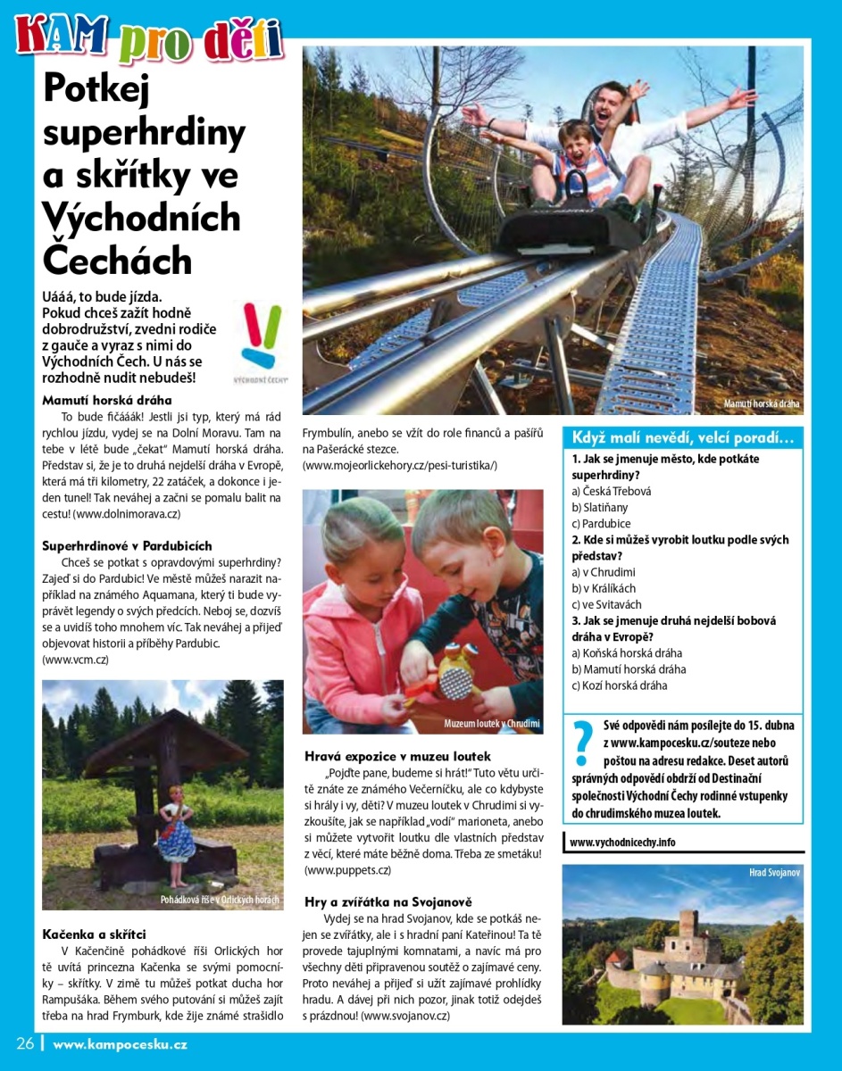Uááá, to bude jízda. Pokud chceš zažít hodně dobrodružství, zvedni rodiče z gauče a vyraz s nimi do Východních Čech. U nás se rozhodně nudit nebudeš!