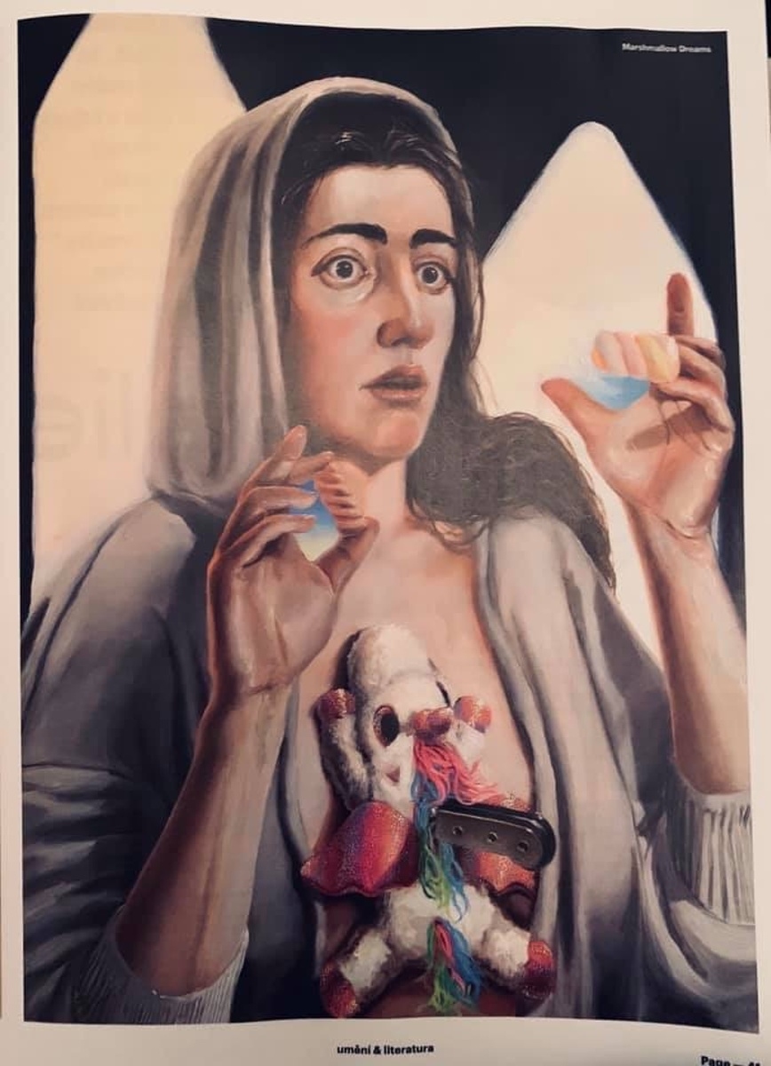 A o tom mluví i Klářiny obrazy, ve kterých se ze zbožňovaných předmětů stávají ikony, ke kterým se upínáme jako k symbolům osobního naplnění. Vše tak nějak mechanicky. Skoro by u toho všeho šlo zaslechnout zvuk těch krásných mechanicky hrajících skříněk-šperkovnic, s dokola se otáčejícími figurkami. Stále stejně, bez životadárného dynamismu, ačkoli pohyb figurky vlastně vykonávají. Ovšem jaksi bez svého přičinění. Bez nutnosti se o něj snažit. Je to stále opakovaný pohyb za vlastněním šperků, mazlíčků, kterými zdobíme své zevnějšky a utěšujeme chvilkové emoce, zatímco uvnitř zůstává prázdnota.