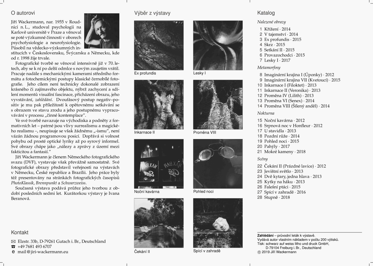 Na úvod si dovolím citovat ohlas k jedné z předchozích Jiřího výstav: „U Jiřího Wackermanna není černobílá fotografie jen retromódou či technickým anachronismem v době digitáních technologií. Má svůj důvod, svou poetiku „zjevování“, je autentická“ (Josef Kroutvor).