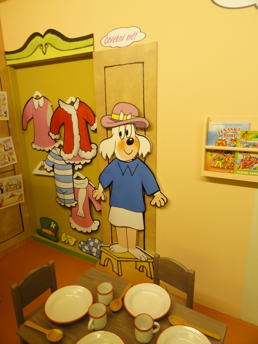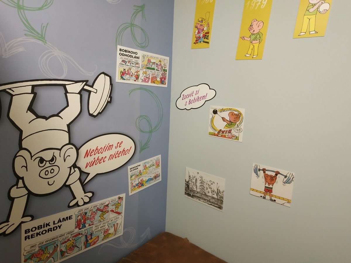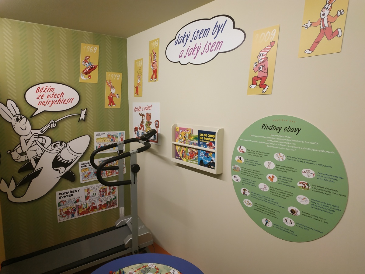 Výstava představuje hravou formou protagonisty původního českého komiksu Čtyřlístek – psí slečnu Fifinku, prasátko Bobíka, králíka Pinďu a kocoura Myšpulína. V některých příbězích vystupuje také zloduch Kazimír Zádrhel, který se snaží Čtyřlístku všelijak uškodit. Děti se mohou seznámit s hrdiny slavného obrázkového seriálu prostřednictvím původních kreseb a interaktivních her. V Myšpulínově garáži na návštěvníky čeká podivuhodné čtyřlístkovské vozidlo – chronolet. Svět Čtyřlístku a kontext doby mapuje časová přímka s připomínkami významných událostí v životě časopisu, Prahy i České republiky. Nechybí ani pátrací hra pro děti Za tajemstvím Pindruší.