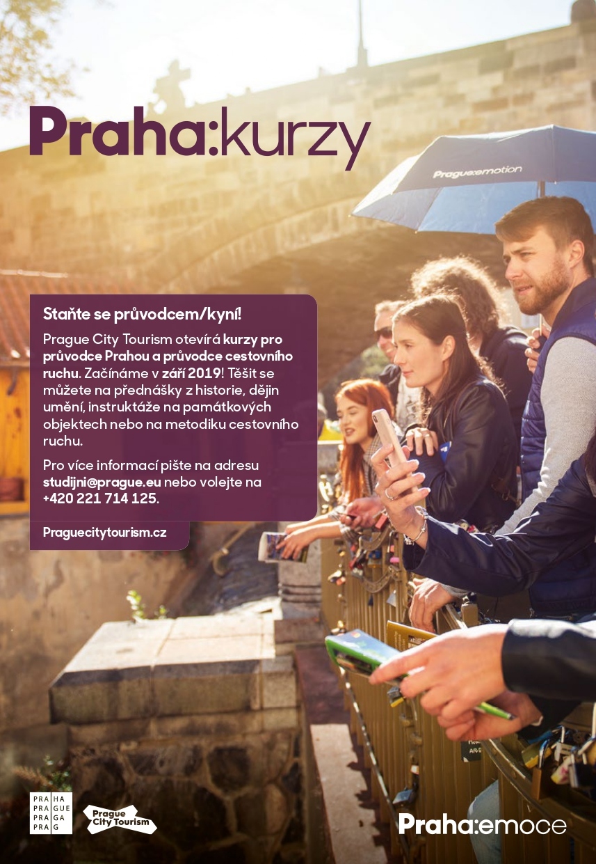 Studijní oddělení Prague City Tourism připravilo pro zájemce o průvodcovské kurzy rekvalifikační kurzy průvodců Prahou i cestovního ruchu. Kurzy budou otevřeny od 17. 9. 2019 Přihlašování je možné do 10. 9. 2019. Kurzy je možné zakoupit také v eshopu na eshop.prague.eu