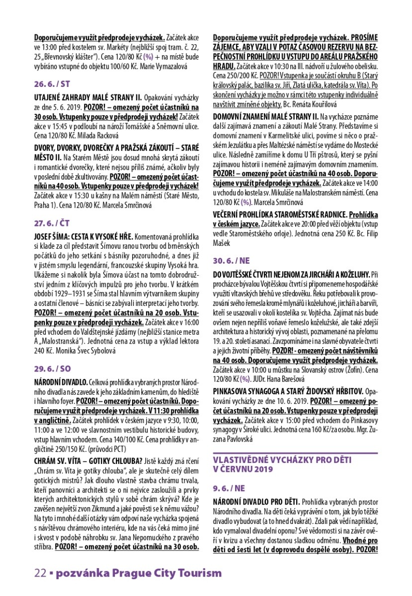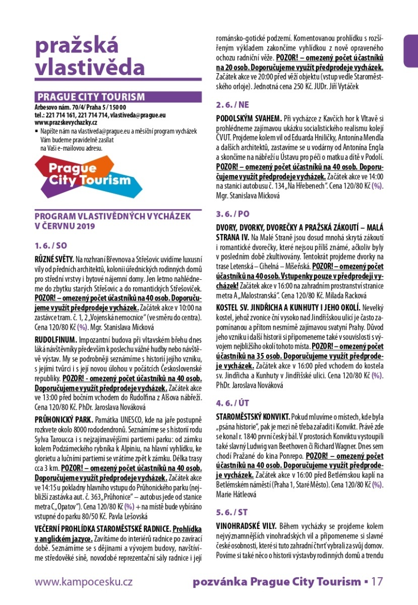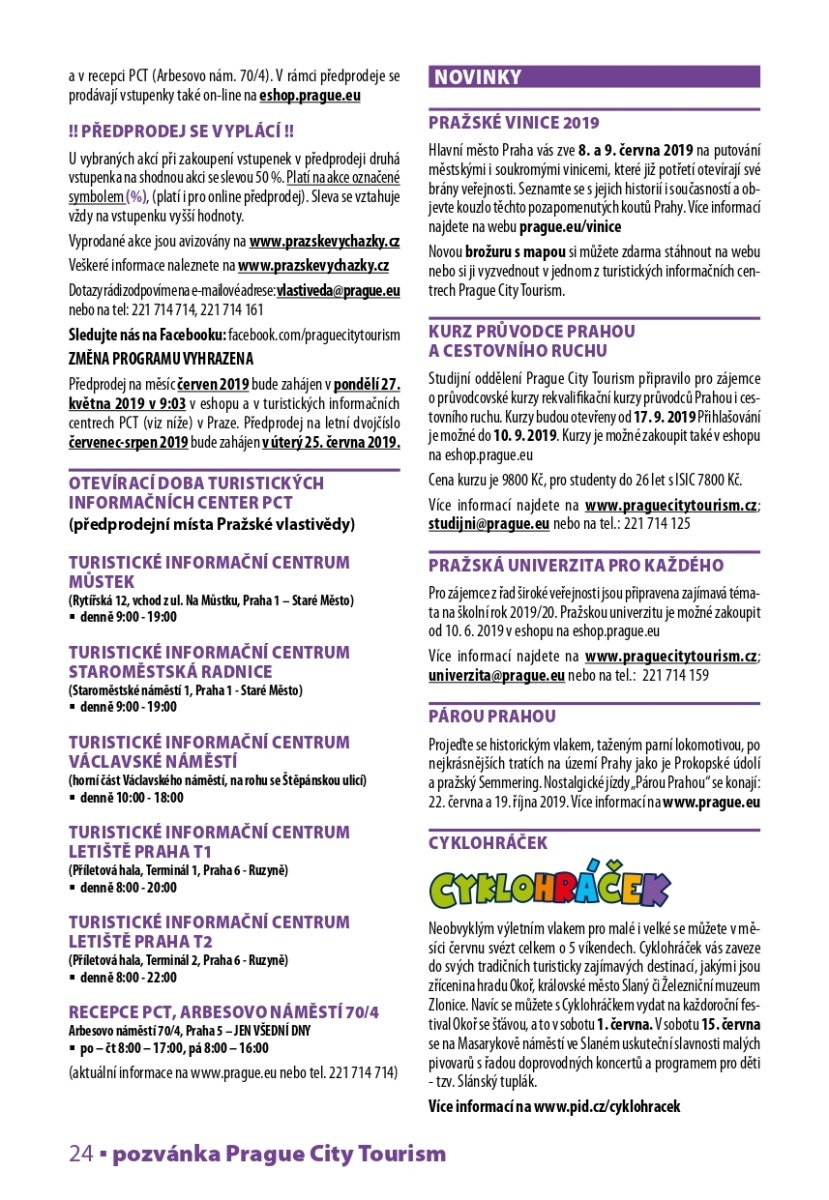 Dotazy rádi zodpovíme na e-mailové adrese: vlastiveda@prague.eu nebo na tel: 221 714 714, 221 714 161Sledujte nás na Facebooku: facebook.com/praguecitytourismZMĚNA PROGRAMU VYHRAZENAPředprodej na měsíc červen 2019 bude zahájen v pondělí 27. května 2019 v 9:03 v eshopu a v turistických informačních centrech PCT (viz níže) v Praze. Předprodej na letní dvojčíslo červenec-srpen 2019 bude zahájen v úterý 25. června 2019.
