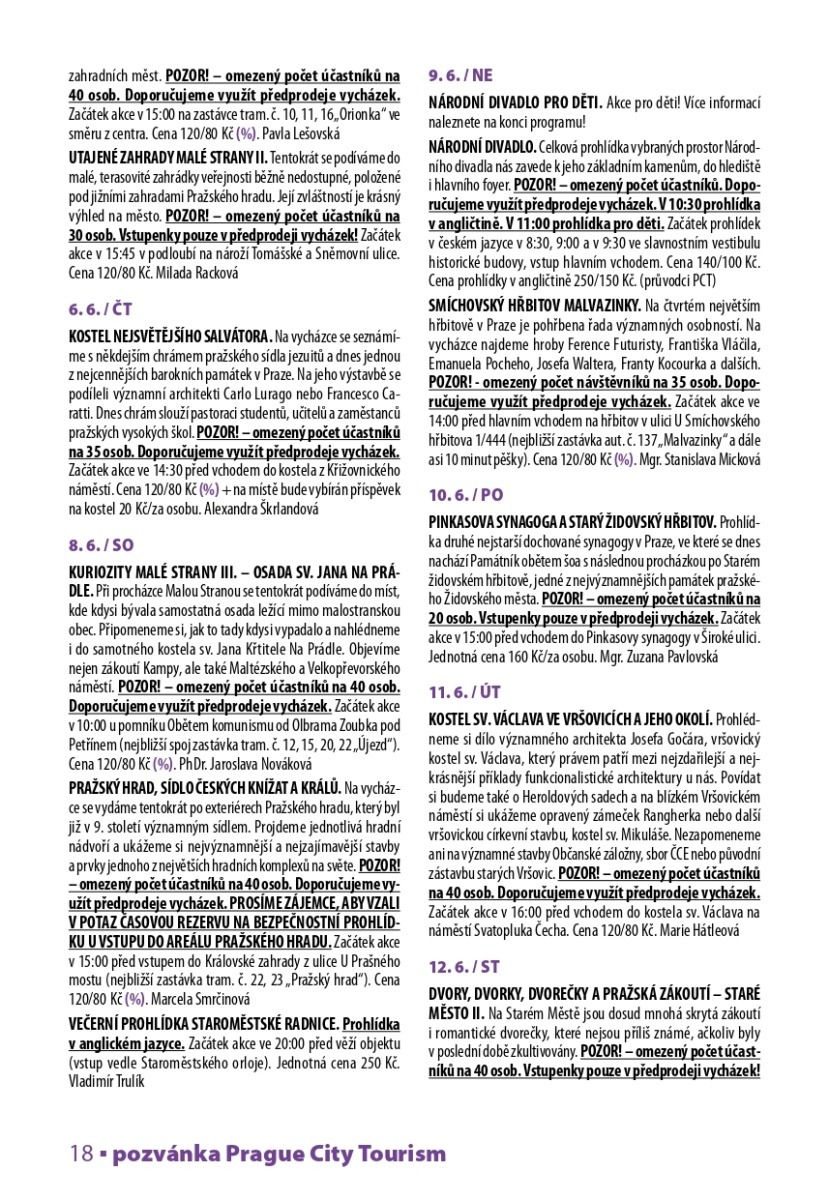 Vyprodané akce jsou avizovány na www.prazskevychazky.cz